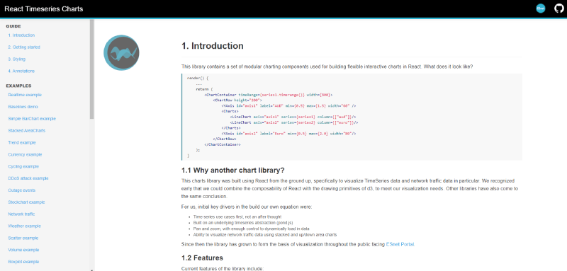因为React TimeSeries Charts适合特定的目的,所以它是有此类项目的开发者的一个很好的选择。它将D3用于次要元素,而高阶组件是React。