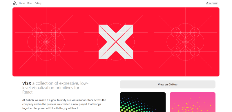 Visx不是一个图表库,而是一个用于React的富有表现力的、低级别的可视化基元的集合。它由Airbnb构建,与你的React应用集成,帮助你用模块化的图表组件创建你的库。