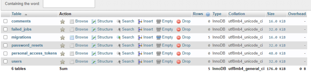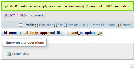 现在,检查数据库,看到空的评论表:
