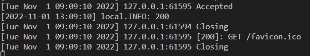状态代码的信息日志被输出到终端。