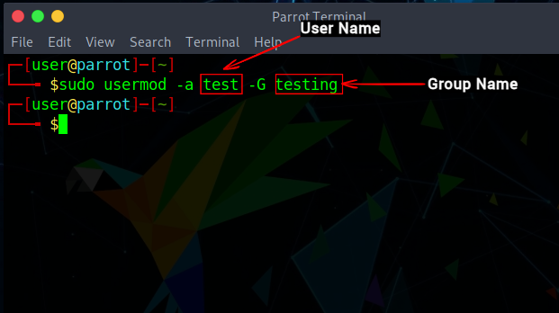 这里, -a 选项代表追加(在末尾添加),它将用户添加到一个现有的组中,而 -G 标志用于指定用户被追加到的组的名称。这个命令没有粗略输出的选项,只是在用户或组不存在时给出一个警告。