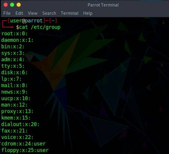 sudo cat /etc/group