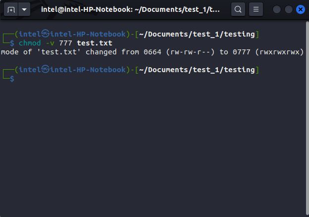 让我们看一个例子,使之更容易理解。假设你想为 “test.txt” 文件的所有用户设置读、写和执行的权限,那么使用这个命令: