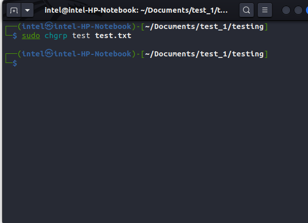 例如,如果你想把组改为test,使用 chgrp 命令: