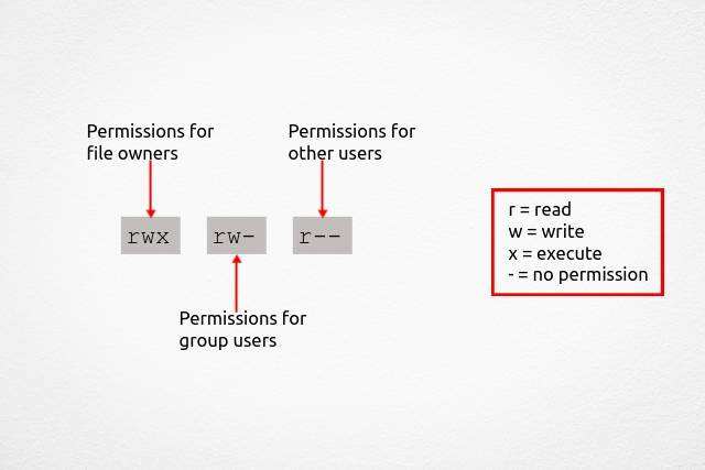 这些用户中的每一个都有三种类型的文件权限,决定了用户可以执行的不同类型的操作: