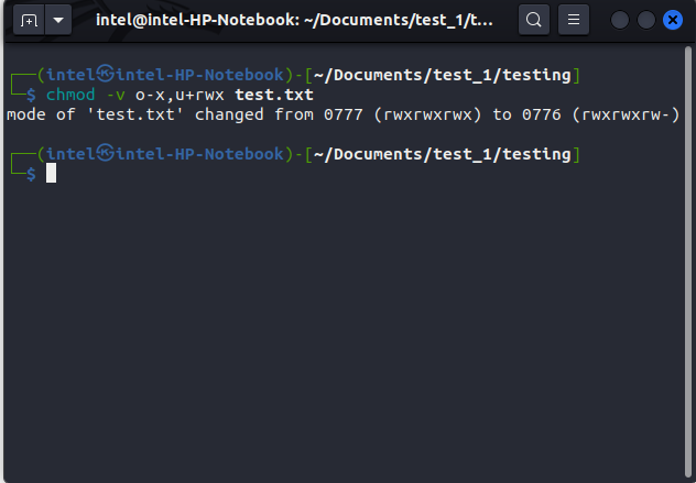 你甚至可以为不同的用户类型设置多个权限。例如,你想从其他用户类型中删除执行权限,并为文件所有者增加读、写和执行权限: