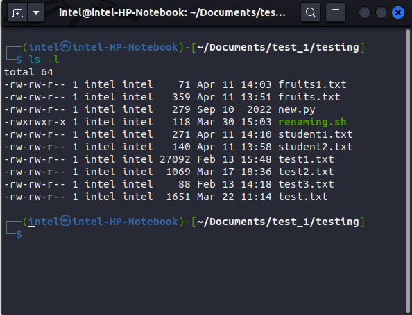 一旦你执行这个命令,你将看到当前位置的所有文件和目录的列表。你的输出将类似于下面的屏幕截图: