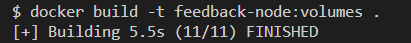 docker build -t feedback-node:volumes . docker run -d -p 3000:80 --name feedback-app feedback-node:volumes