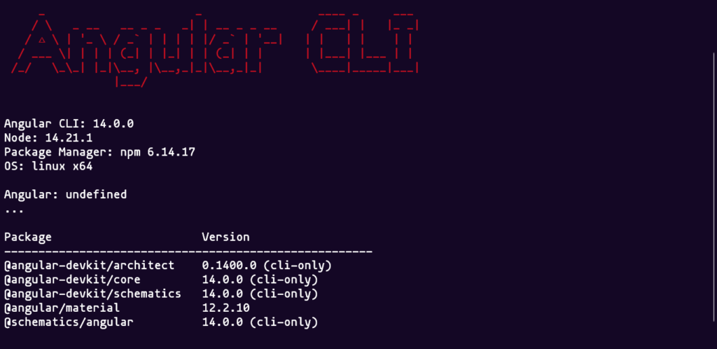 为了确认Angular已经被安装,你可以通过运行 ng v 命令来查看版本,这将给我们带来以下结果: