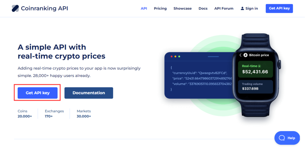 接下来,你需要复制API来获取CoinRanking文档中的所有加密货币币。