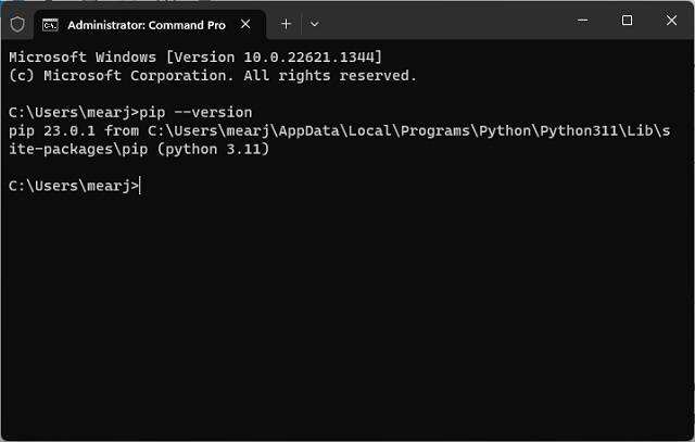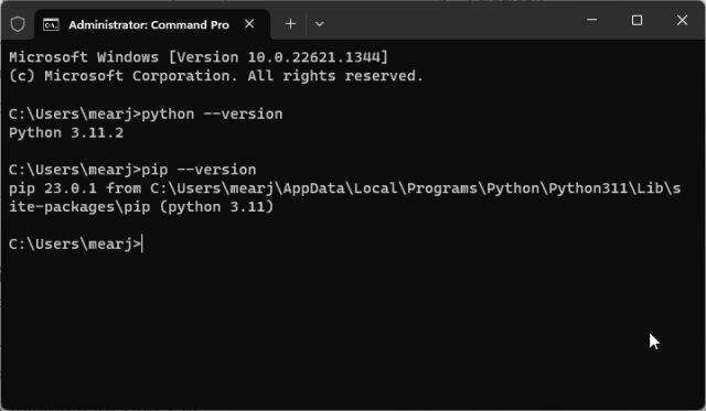 1. 要检查一切是否顺利,打开Windows终端或命令提示符,运行以下命令。如果安装成功,第一个命令将显示Python版本,第二个命令将显示当前安装在你的PC上的Pip版本。