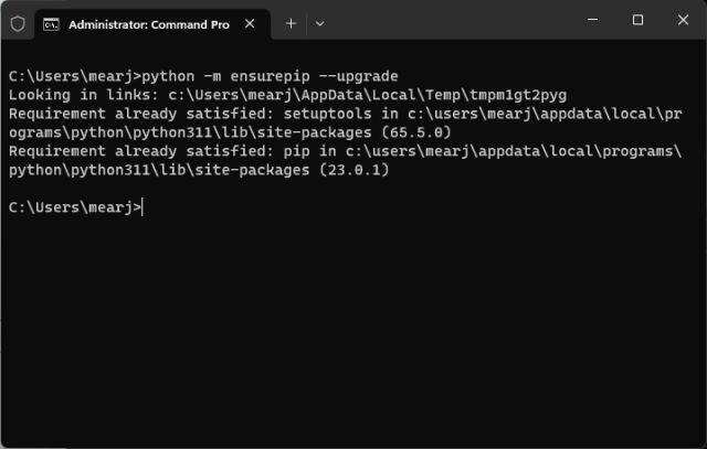 5. 除此以外,你还可以运行这个命令,使用 “surepip” 模块在Windows PC上下载和安装Pip。