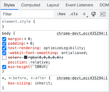 这是我最喜欢的选项之一–预览元素的样式变化。你不必在本地进行修改,也不必在每次改变一个属性时等待重新加载页面。或者你可以预览你无法访问的页面会是什么样子,例如,不同的字体颜色。就像我在前几节中描述的那样,选择给定的节点,并查看靠近HTML树的样式标签。在第一个视图中,你可以看到应用于该元素的所有CSS类,你可以改变它们的值(只需双击该值),添加新的属性等。你也可以取消靠近属性的复选框来禁用给定的规则。当某些规则被划掉时,意味着一些其他属性覆盖了它。
