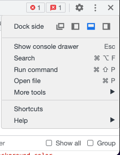 提示:你的面板可以作为一个单独的窗口可见,也可以在页面的右/左/下侧。如果你想改变这一点,在Chrome DevTools面板的右上方找到3点菜单,点击Dock side的首选模式选项。