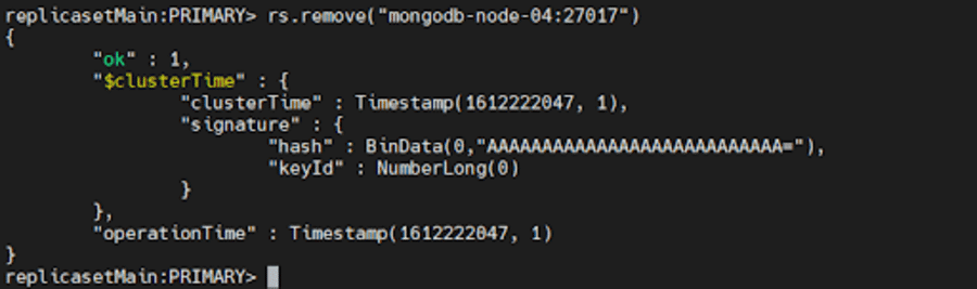 正如之前所讨论的,这个方法会选择其中一个成员作为副本集的主要成员。要找到主要成员,请使用rs.status()。在继续之前连接到主成员。