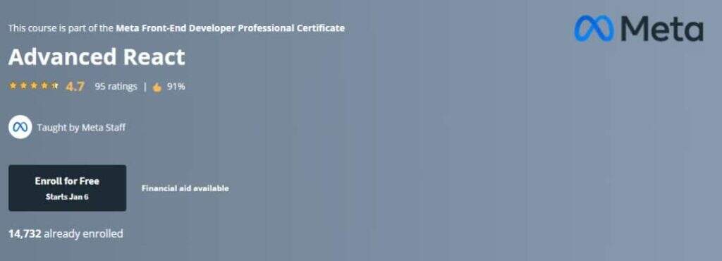 本课程是为想要提升他们的前端Web开发技能,并以轻松和快速的方式建立强大的React应用程序的专业人士准备的。