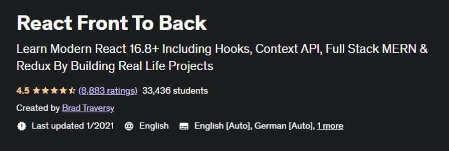 Reactforbeginners.com是一个很好的网站,你可以在这里学习React并提升你的技能。该网站声称可以在几个下午的时间里教你React,有一个循序渐进的高级课程,将帮助你在React和Firebase以及网站组件中创建真实世界的应用程序。