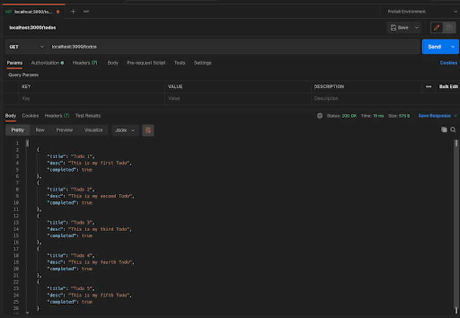 接下来,我们将创建一个端点来检索存储在我们服务器中的所有 Todos :
