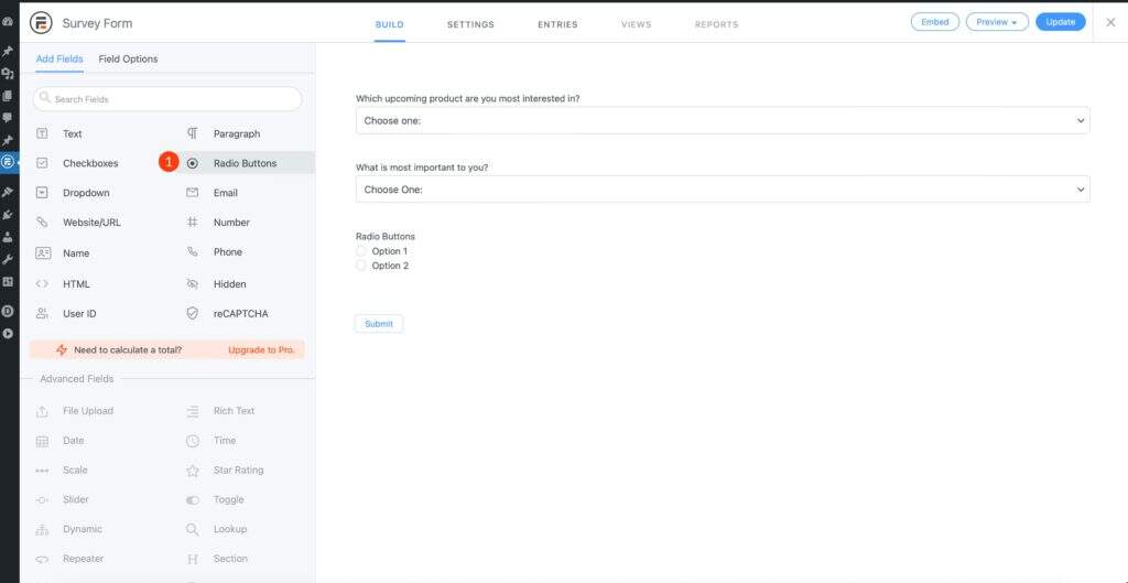接下来,您将添加一个单选按钮字段。