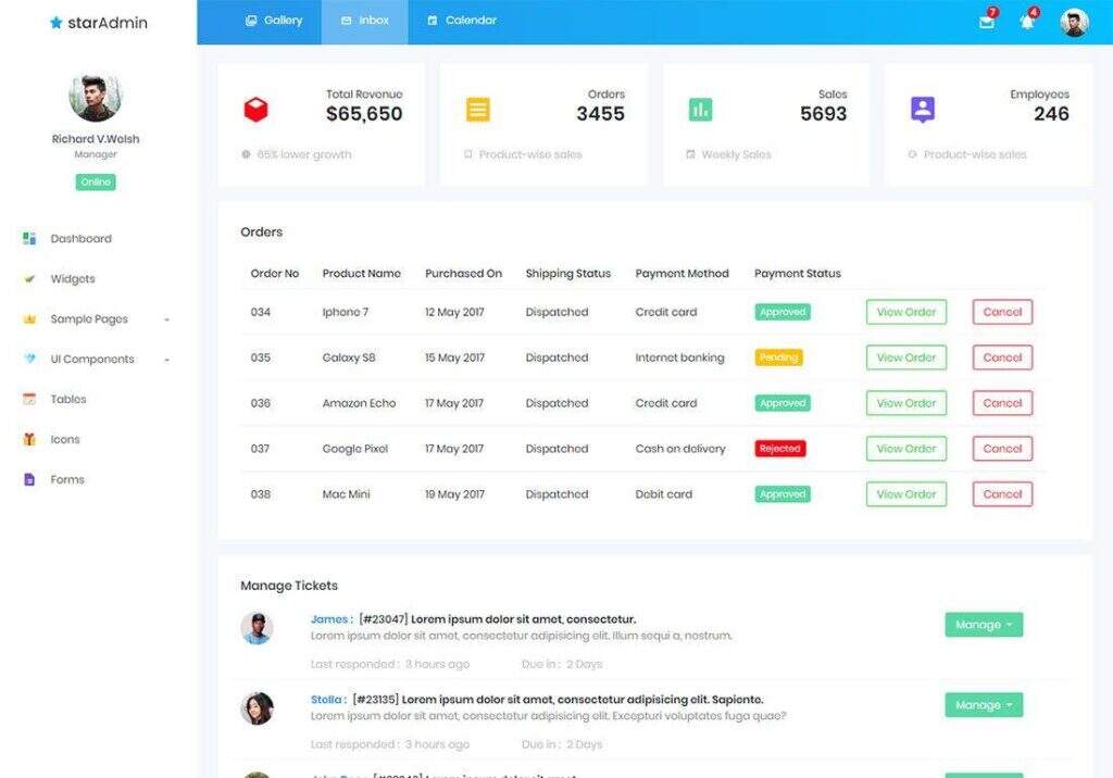 StarAdmin是一个基于Bootstrap和VueJS的免费VueJS管理模板。它完全响应式和移动优先,为您的网络应用程序提供了良好的基础。StarAdmin非常灵活且高度可定制,为您提供最佳的帮助来制作具有令人惊叹的UI和用户友好性的管理面板。它包含出色的小工具、表格、图标、表单和其他基本元素。此管理模板还包括出色的通知、示例页面 – 登录、注册、404和500。查看此免费模板的其他有用功能。
