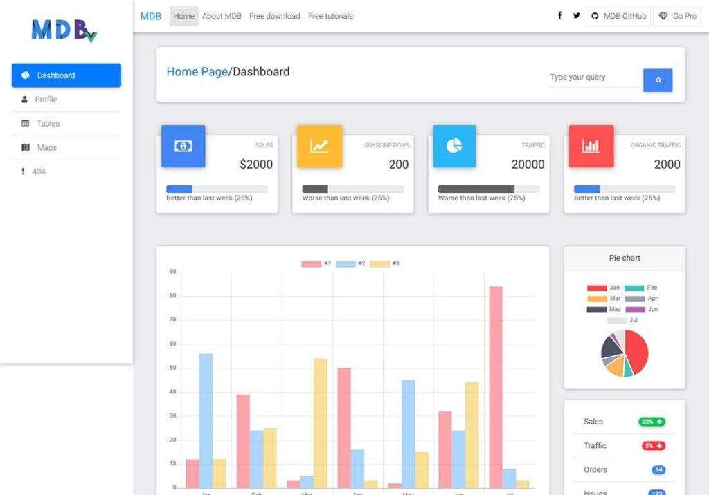 这是另一个使用Bootstrap、VueJS和Material Design构建的免费且响应迅速的管理仪表盘模板。它是用Bootstrap的Material Design制作的。它有一个功能强大且免费的UI工具包,包含400多个Material UI元素、600多个材质图标、74个CSS动画等等。它包含不同风格的仪表盘、数据展示和众多有见地的组件。它非常适合用于个人和商业用途。