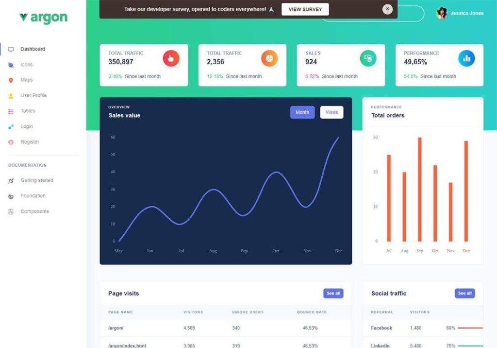 正在寻找可用于下一个Web应用程序的完美管理模板?为什么不查看Vue Argon Dashboard,这是一个由Bootstrap和VueJS提供支持的免费VueJS管理模板。这个开源和免费的模板具有很棒的功能,可以立即呈现具有专业外观的仪表盘!具体来说,它有100个手工制作的组件、3个自定义插件和7个示例页面。
