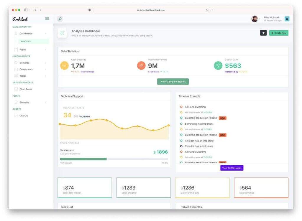 配备16个特殊组件、2个自定义插件和4个示例页面。这些元素很珍贵,并且可以与您使用的任何Web应用程序配合使用。您的仪表盘将以柔和的色彩、漂亮的排版、宽敞的卡片和图形来完成这项艰巨的任务。