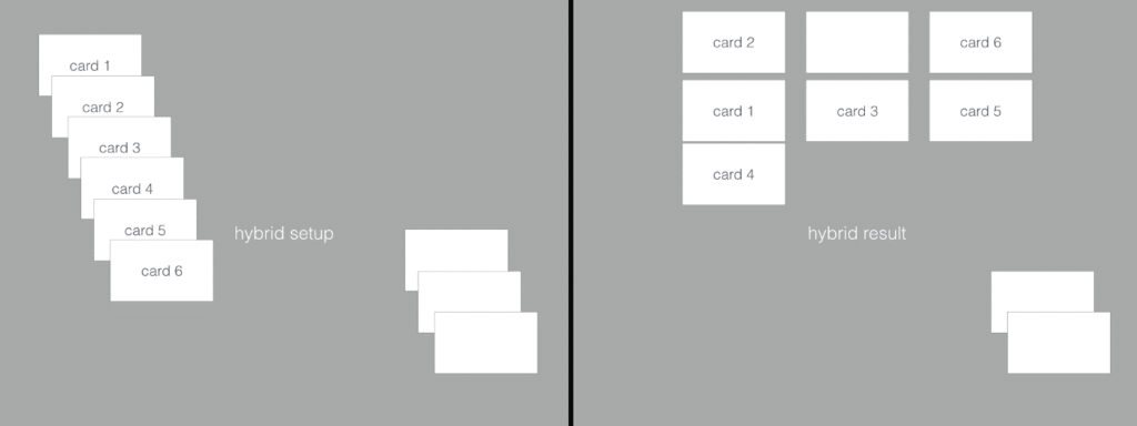 如果您还记得玩纸牌配对游戏,那么纸牌的种类是相似的。这是它的工作原理。卡片分类可以是“开放的”,用户创建他们的类别以将卡片分类,“封闭的”,其中所有类别都是预定义的且不灵活。或者,如上图所示,卡片分类可以是“混合”,用户可以自由添加自己的类别,但也可以使用预定义的类别。