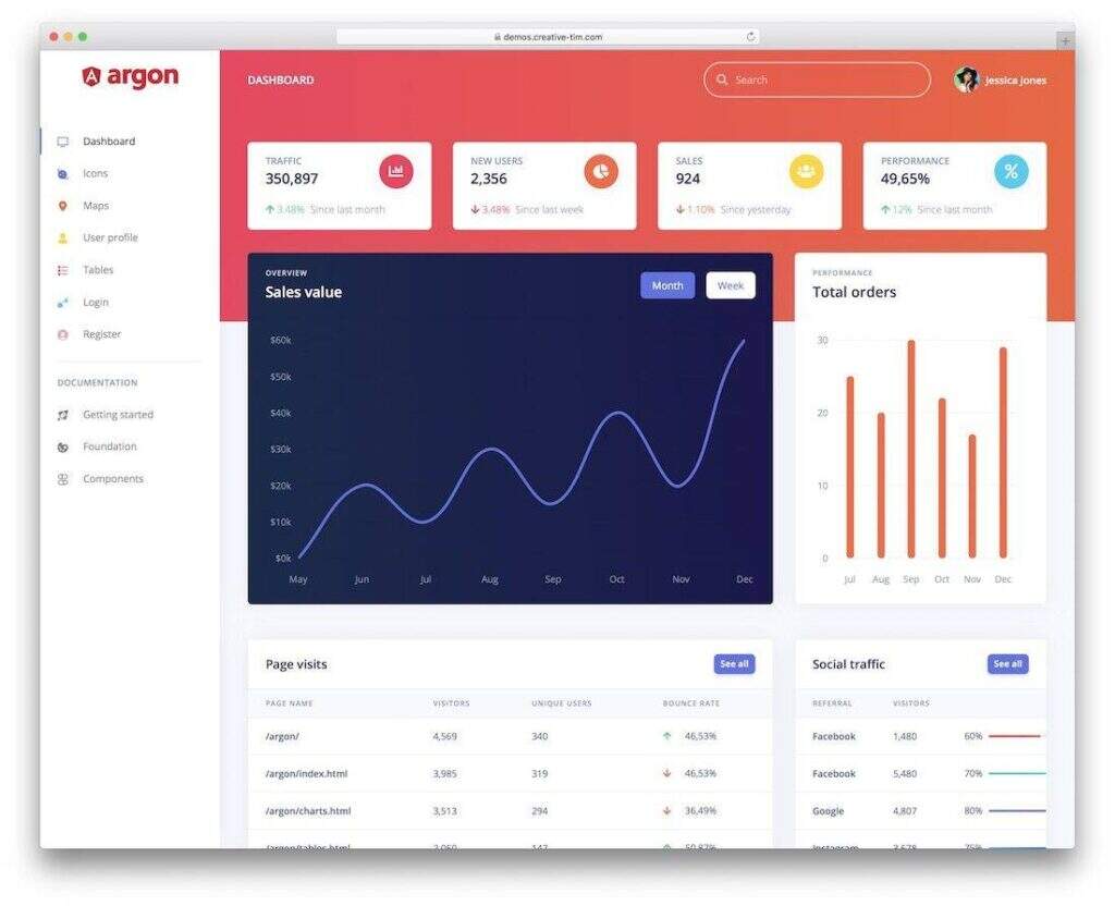 Argon已经以模板格式出现,但该工具如此受欢迎,作者决定为您提供一个完整的UI工具包以方便您使用。这个包比前一个包更大,让你可以自由地使用所有你喜欢的元素和组件。其中一百个让您只需混合和匹配可用的就可以找到完美的组合。