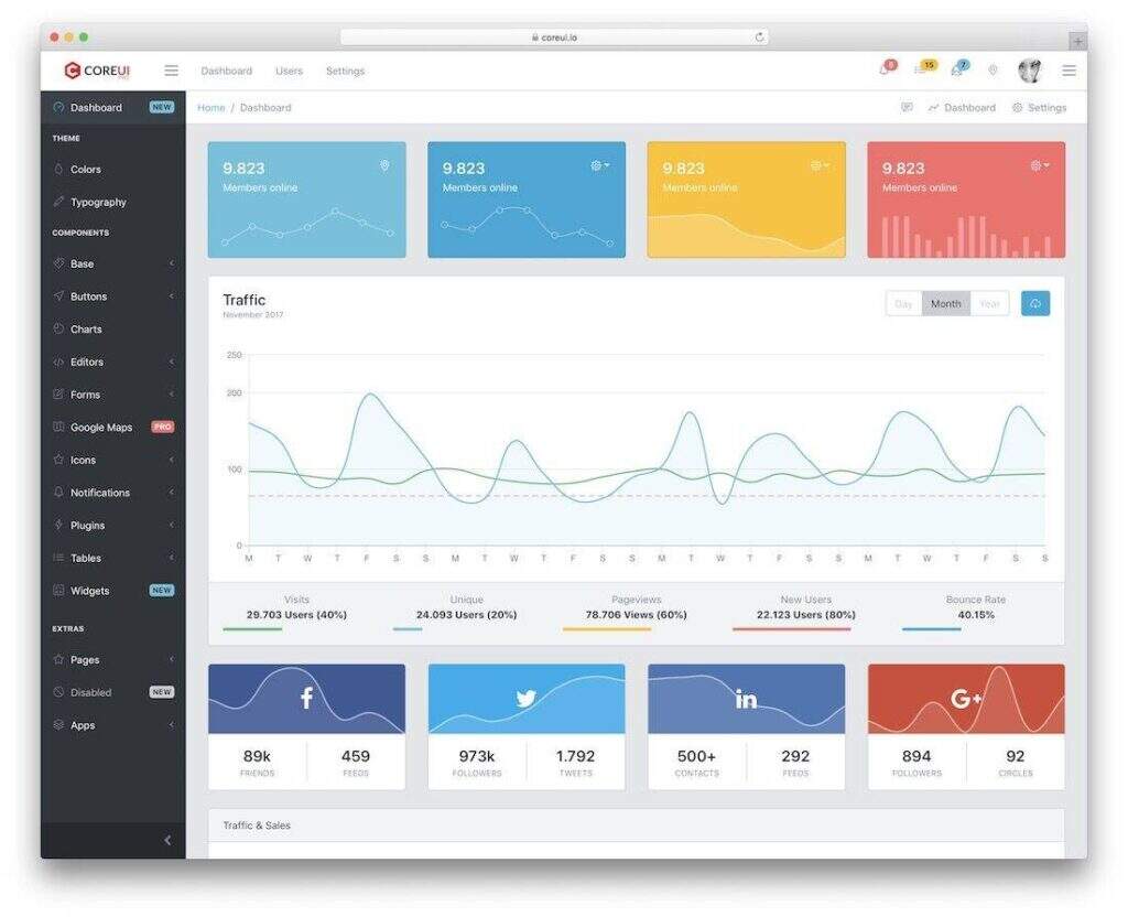 Free Angular Admin Template为您提供了广泛的不同组件、图表、表单、图标包、按钮和插件。当然,您始终可以首先通过访问实时预览来全面检查该工具。使用这个令人印象深刻的模板的专业版,您还可以升级并将您的管理面板提升到一个新的水平。