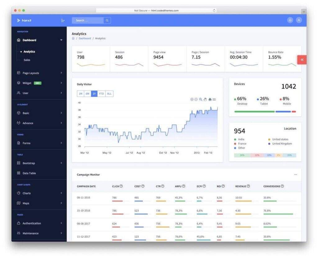 Next是一个同时使用Bootstrap Framework和Angular 8的高级模板。无论您是需要构建一个简单的管理员还是具有大量特性和功能的此类,Next都是可以帮助您的解决方案。Next在设计和编码时考虑到了每个用户,确保新手和熟练的专业人士都能充分利用它。更不用说,它足够灵活,可以处理一系列不同的项目。
