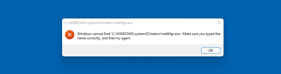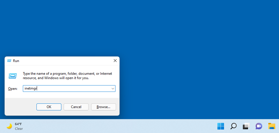 IIS包含在自Windows NT 4.0以来的所有Windows版本中,但默认情况下不包含。要确定您的计算机上是否安装了IIS,您可以按Windows键 + R。然后输入“intemgr”并选择OK:
