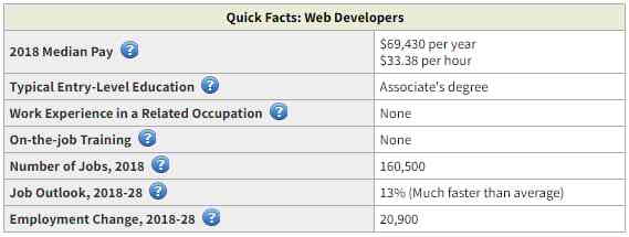 尽管这个工作行业有所增长,但工资仍在继续增加。如今,Web开发人员并没有过度饱和。