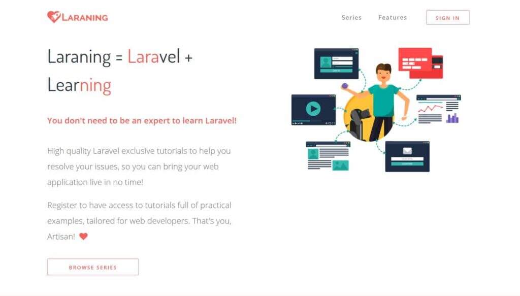 你不一定要从一个Laravel教程开始,但你也可以选择混合方法。例如,您可以在注册时事通讯、收听播客和阅读博客的同时从视频课程开始。