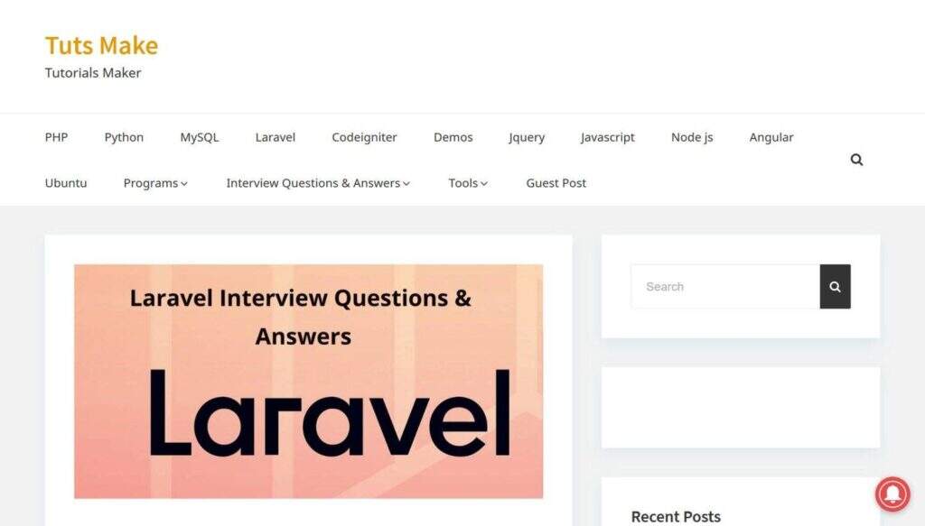 TutsMake也为Laravel面试问题和答案提供了一个单独的类别,并提供了直截了当且深思熟虑的解释。