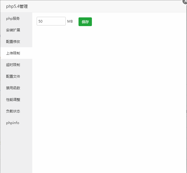 设置当前PHP版本的文件上传限制。