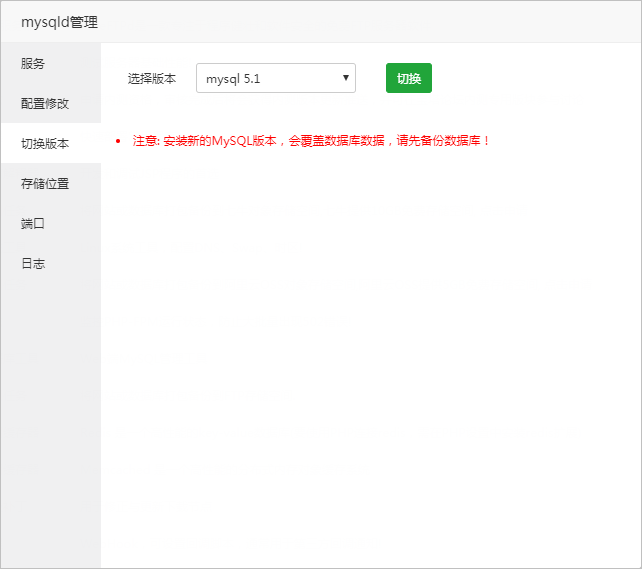 注意事项:安装新的MySQL版本,会覆盖数据库数据,请先备份数据库!