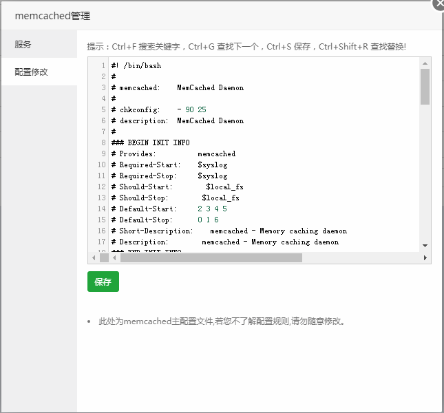 注意事项:此处为Memcached主配置文件,若您不了解配置规则,请勿随意修改。