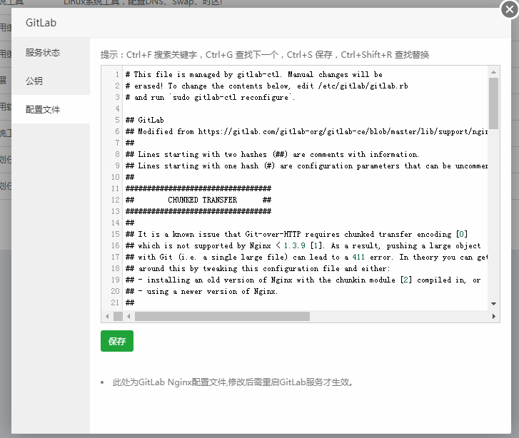 注意事项:此处为GitLab nginx主配置文件,若您不了解规则,请勿随意修改,