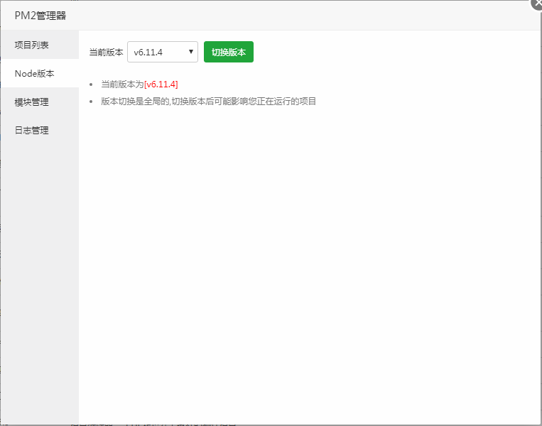 修改当前node.js的版本,PM2会获取当前node.js所有的版本。