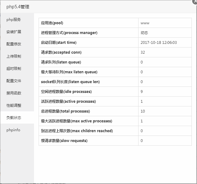 展示当前PHP状态情况,如请求数,启动日期,应用池等等。