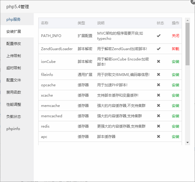 - opcache、xcache等脚本缓存器,不要同时安装,这可能导致PHP无法正常运行