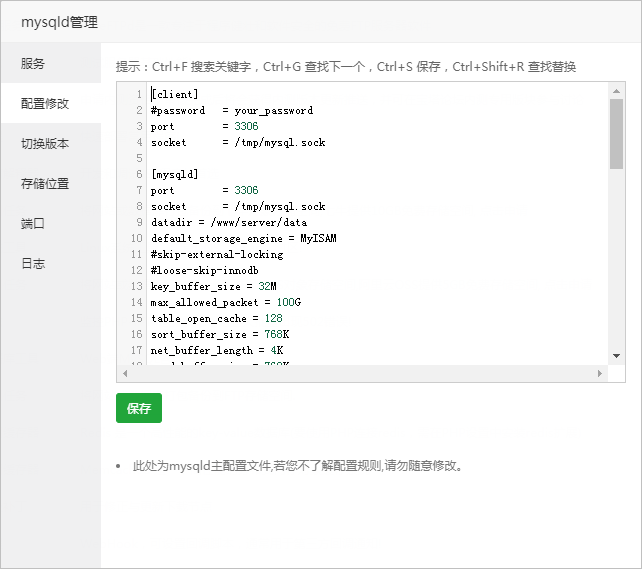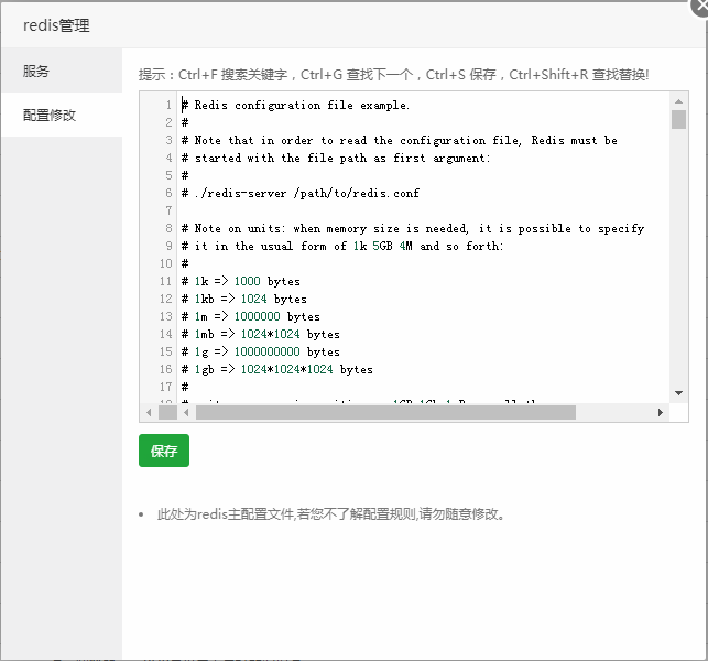注意事项:此处为Redis主配置文件,若您不了解配置规则,请勿随意修改。