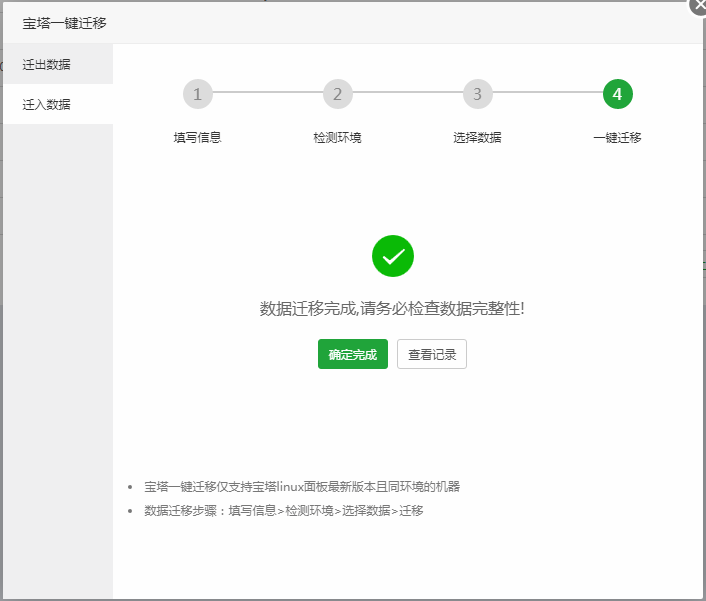 宝塔一键迁移仅支持宝塔linux面板最新版本且同环境的机器