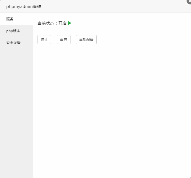 停止或重启当前phpMyAdmin服务和重新加载phpMyAdmin配置文件。