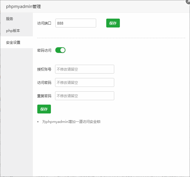 修改phpmyadmin的访问端口。给phpmyadmin的访问页面增加一道安全锁。