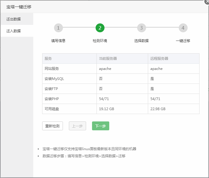宝塔一键迁移