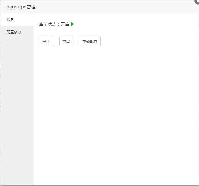 修改当前的Pure-Ftpd的配置文件,如果需要使当前配置生效,请在Pure-Ftpd服务管理中重载配置文件。