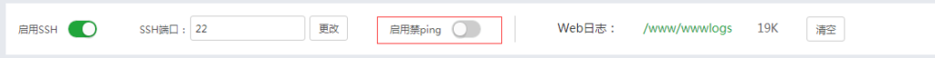 点击该开关,即可开启或关闭PING命令。关闭Ping,可以预防一些小人通过恶意频繁Ping服务器导致服务器访问异常问题。