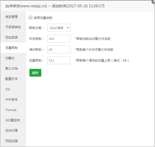 除非您的网站遭遇到恶意攻击,又或者当前服务器配置真的无法承受当前的并发流量,否则,建议不要启用流量控制。